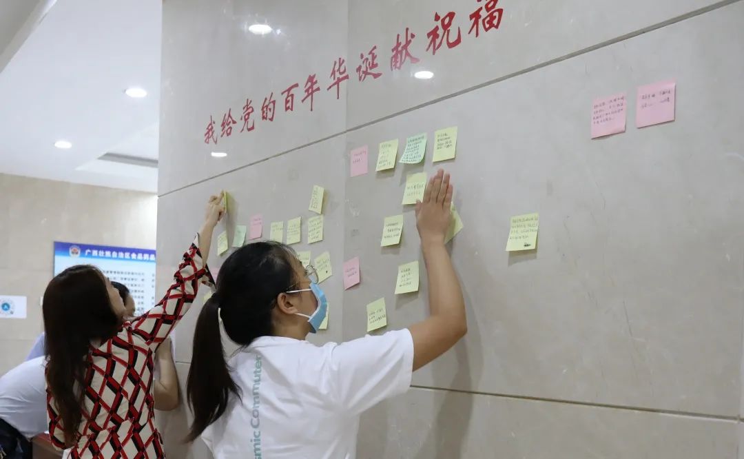 电视直播正式开始后,大家聚精会神收看,认真聆听和记录习近平总书记的重要讲话,始终沉浸在庄严肃穆、恢宏磅礴的庆祝氛围之中,现场多次爆发出经久不息的掌声。收看结束后,广大党员干部心情澎湃,表示能共同见证这一伟大的历史时刻,感到无比喜悦和自豪,纷纷用小贴笺写上心里话,向中国共产党送上最美好的祝福。