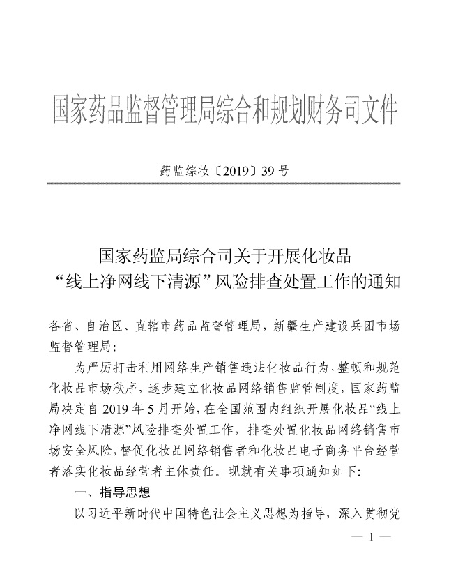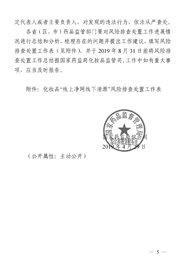 附件:国家澳门赌场官网 综合司关于开展化妆品“线上净网线下清源”风险排查处置工作的通知