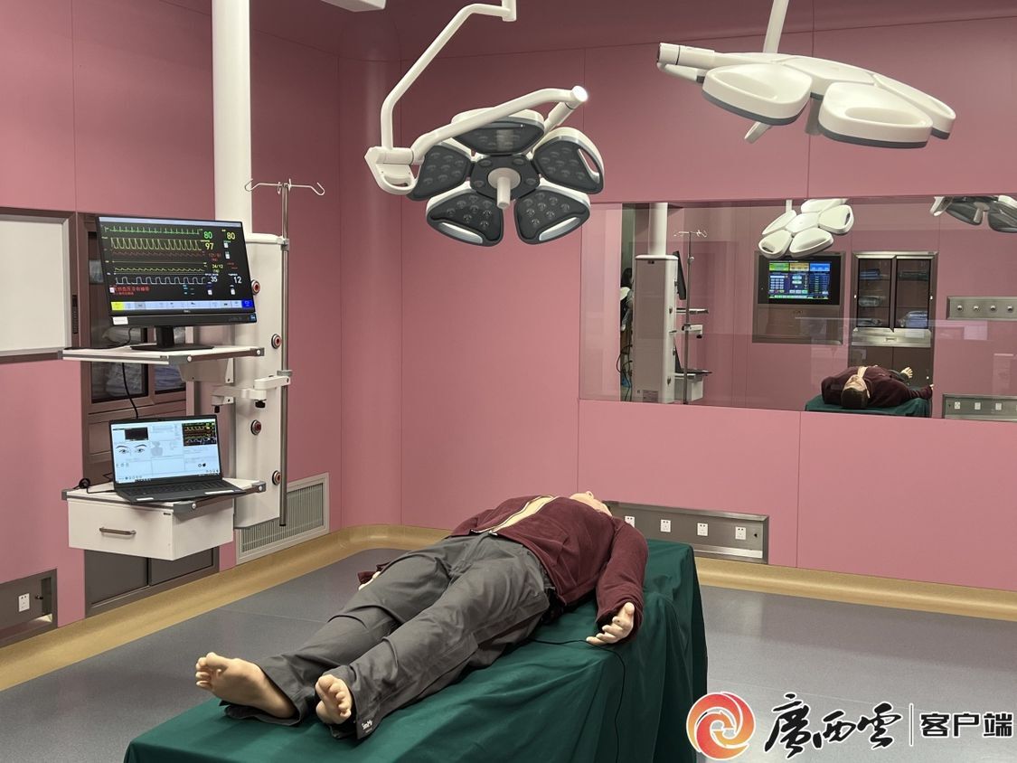 高仿真医用模拟人可实现自主呼吸、血氧变化、可触诊脉搏等反应。广西云-广西日报记者 陶昌顺 摄