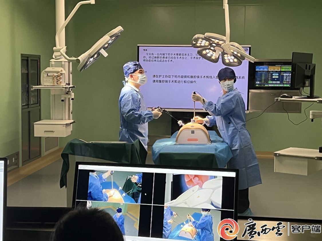 通过模拟手术操作,测试腹腔镜手术剪。广西云-广西日报记者 陶昌顺 摄
