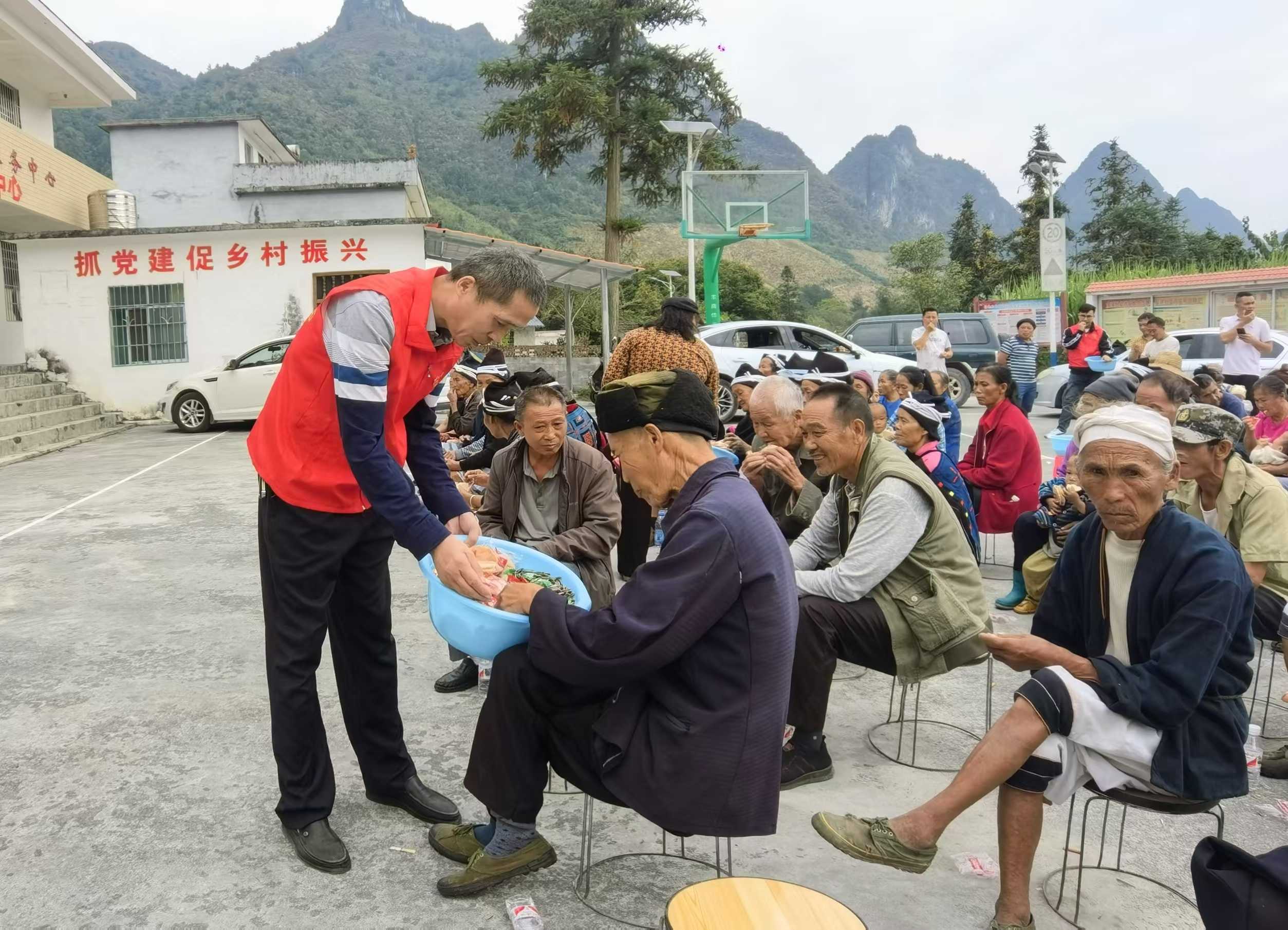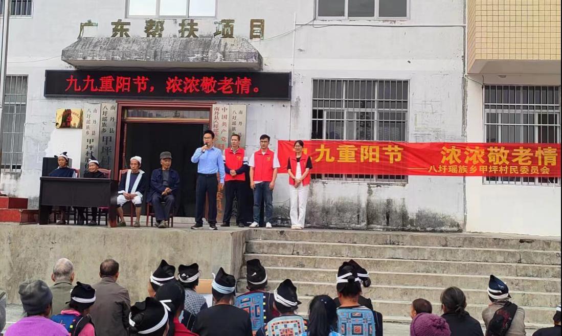 九九重阳节、浓浓敬老情。为进一步弘扬中华民族“尊老、敬老、爱老、助老”的传统美德,全面助力乡村文化振兴,10月12日上午,澳门赌场官网 驻南丹工作队队长、南丹县常委、副县长唐文带领驻村工作队员一道在八圩瑶族乡甲坪村举办2024年重阳节敬老活动,向帮扶村132名老人送上精心准备的慰问品和节日祝福,受到老人们的热烈欢迎。