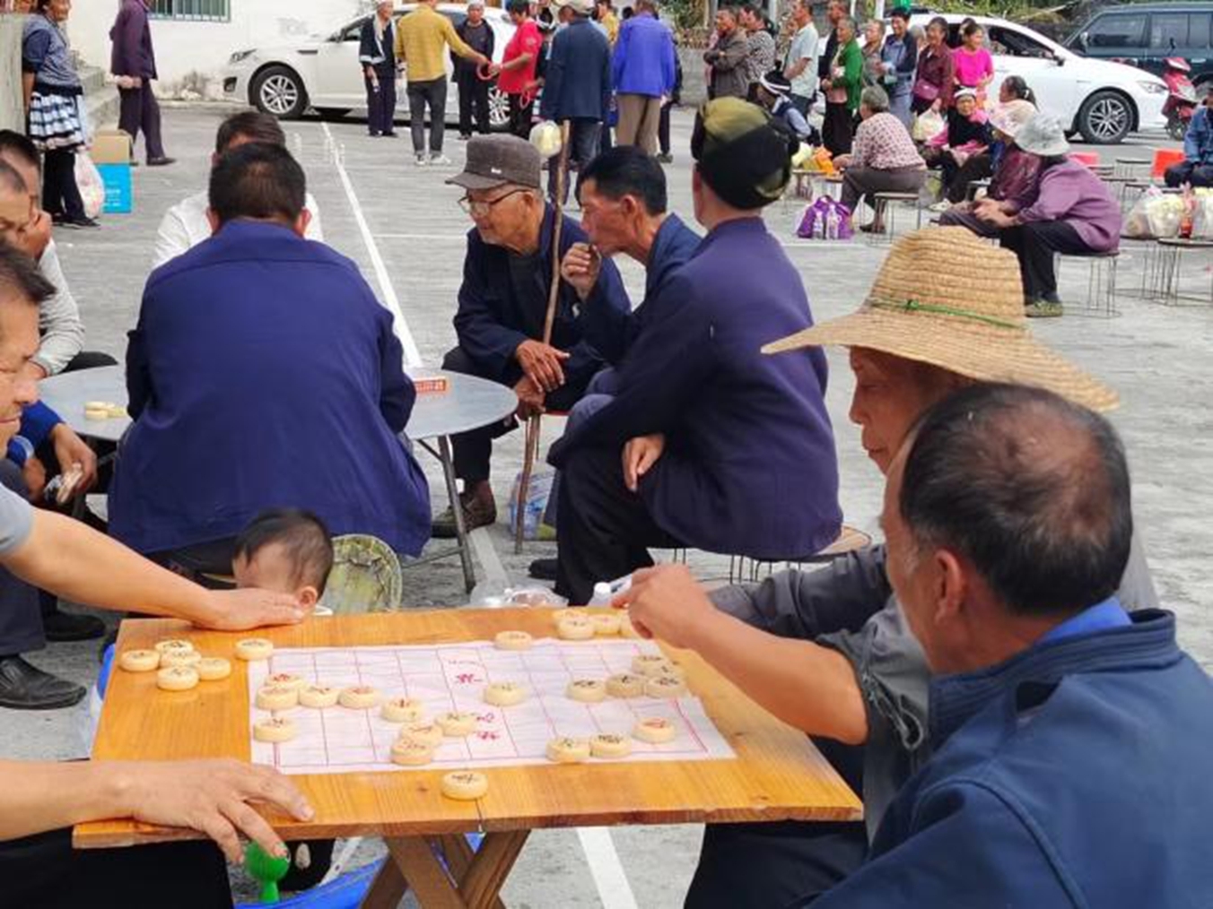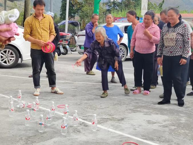 活动现场,徐徐秋风中老人们在宽敞的操场上展开了象棋、有奖套圈、蒙眼击球、唱山歌等竞赛活动,台上山歌语言质朴优美,台下掌声延绵不断;场边有奖套圈、蒙眼击球等传统节目,让老人们玩得流连忘返,仿佛回到少年时光;场中老人们互叙家常,回味昔日乡情旧故,感受着眼前美好愉快的晚年生活,仓桑的脸上写满了幸福的笑意。驻村工作队员、村委会村干部细心的向每一位到场的老人们发放了慰问品和零食,老人们开心笑得合不拢嘴,纷纷感叹自己生活在了好时代,由衷感谢党和政府带领全村群众过上了幸福生活。