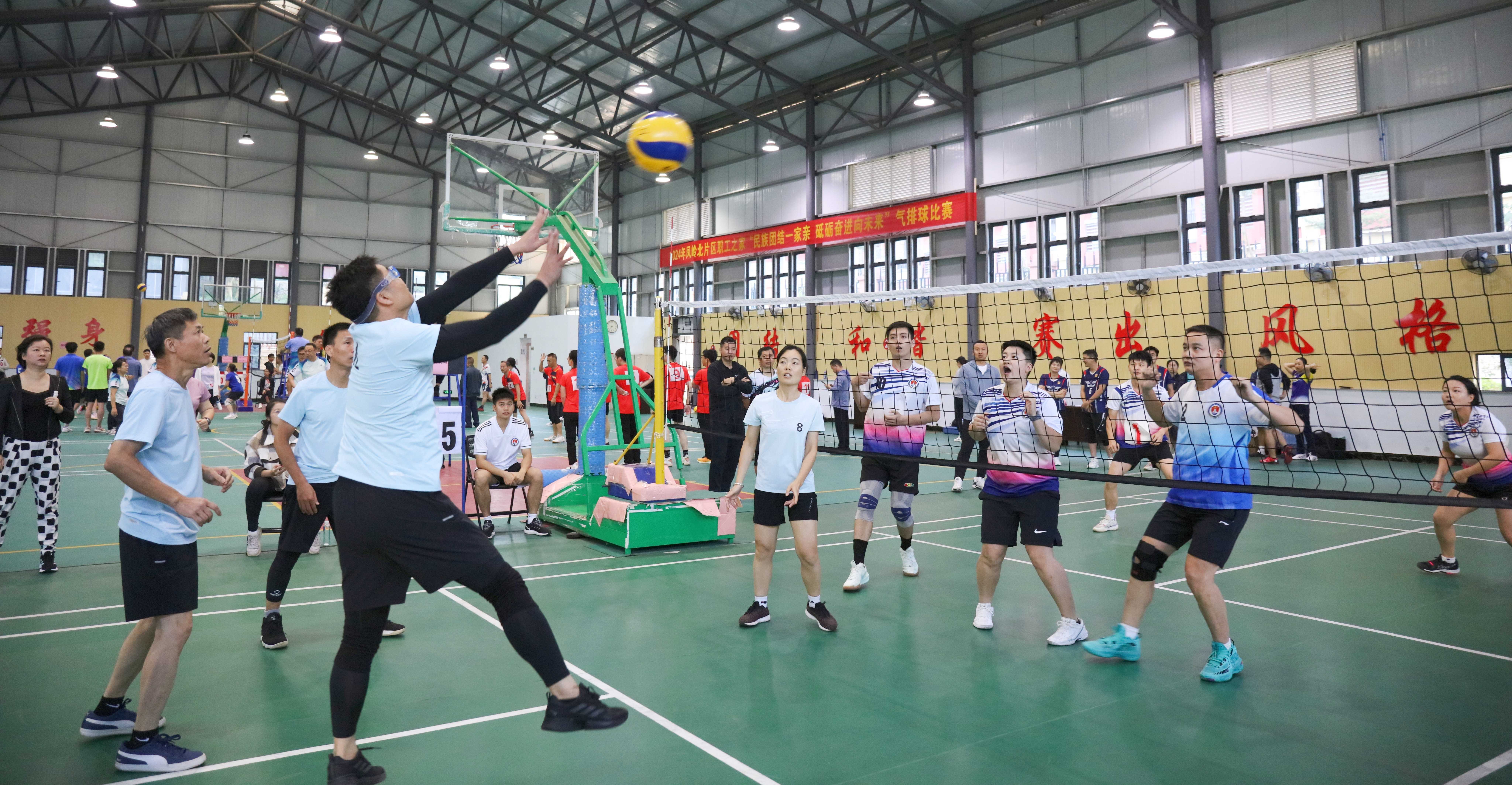 来自凤岭北片区职工之家成员单位的自治区党委网信办、自治区专用通信局、自治区检察院、南宁铁路局、自治区自然资源厅、广西贸促会、自治区林业局、澳门赌场官网 、南宁海关、国家统计局广西调查总队等部门组织的14支代表队参加本次角逐。参赛队伍在赛场上挥洒汗水,展现出高昂的斗志和团队协作精神。选手们在场上你来我往,精彩的扣球和强势攻防赢得了观众的阵阵喝彩。各队伍间相互鼓励,展现出良好的体育精神和团队合作意识。
