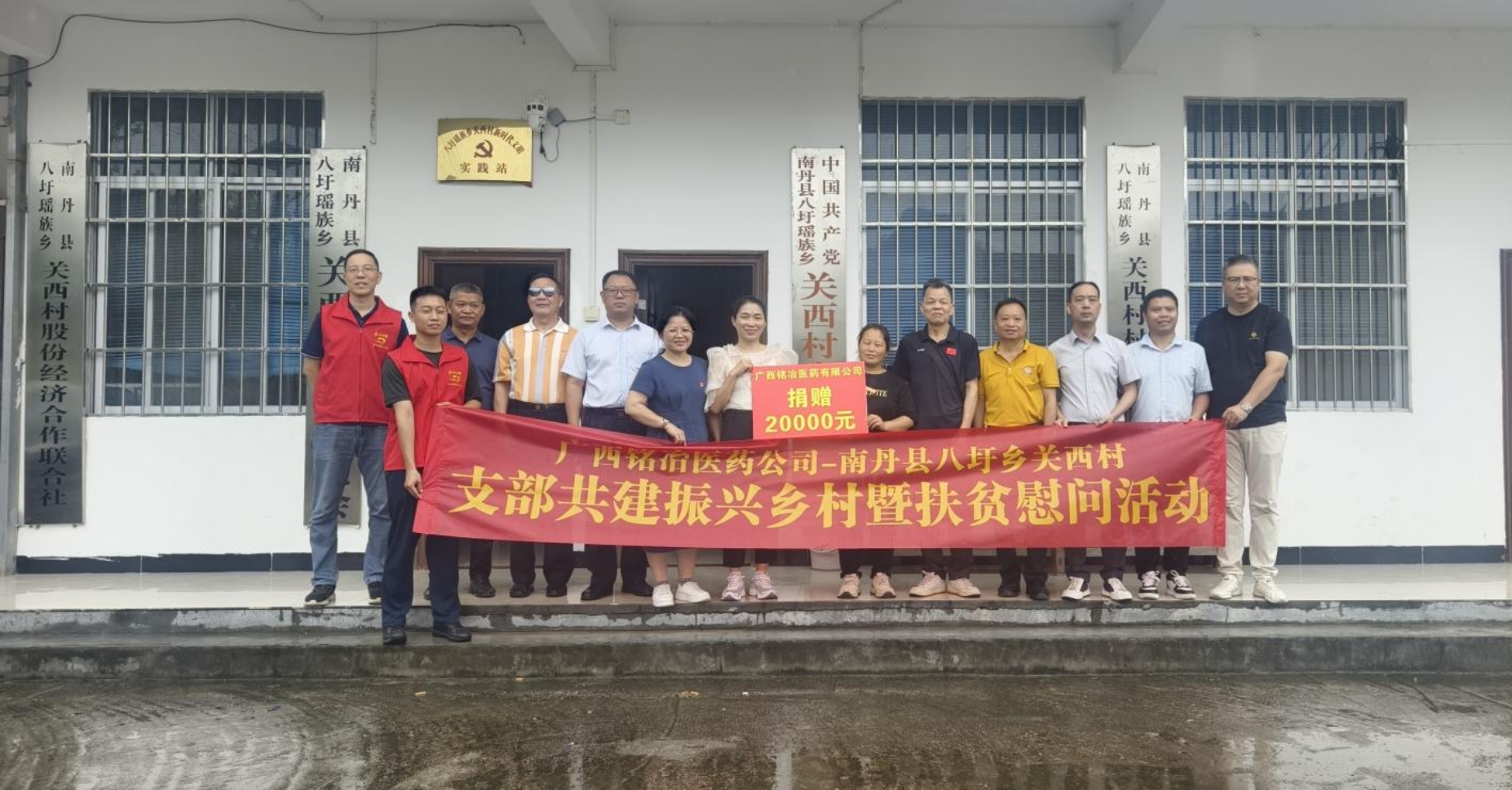 2025年6月30日,在中国共产党成立104周年来临之际,澳门赌场官网 驻村工作队联合广西铭冶医药有限公司,以“党建聚共识,共绘乡村产业发展蓝图”为主题,在河池南丹县八圩瑶族乡关西村开展党支部共建暨爱心捐赠活动,为当地乡村振兴注入新动能。