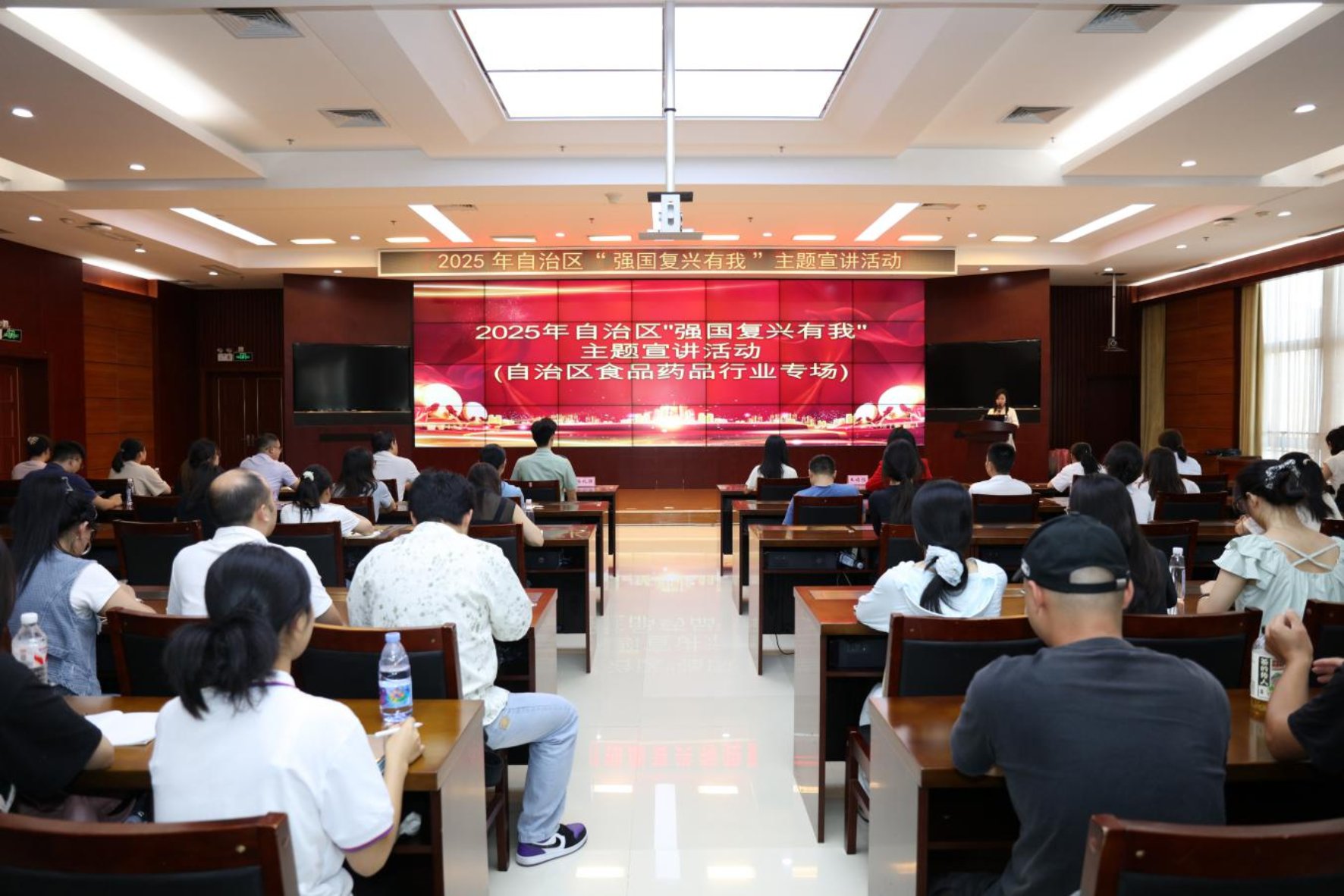8月27日,自治区“强国复兴有我”宣讲团到自治区食品药品行业开展2025年自治区“强国复兴有我”主题宣讲活动。此次活动旨在深入贯彻落实习近平总书记关于广西工作论述的重要要求,聚焦筑牢国家安全、乡村振兴等时代命题,推动党的创新理论进新经济组织、新社会组织、新就业群体,教育引导食品药品行业领域青年牢固树立“实干为要、创新为魂,用业绩说话、让人民评价”价值导向。自治区食品药品行业领域青年近100人参加活动。