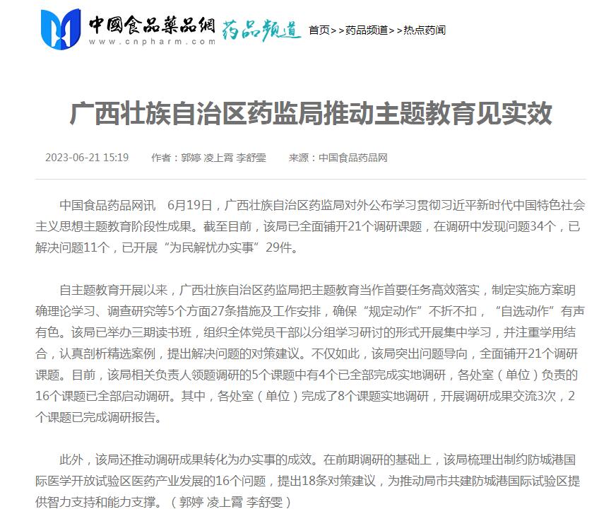 中国食品药品网讯 6月19日,广西壮族澳门赌场官网 对外公布学习贯彻习近平新时代中国特色社会主义思想主题教育阶段性成果。截至目前,该局已全面铺开21个调研课题,在调研中发现问题34个,已解决问题11个,已开展“为民解忧办实事”29件。