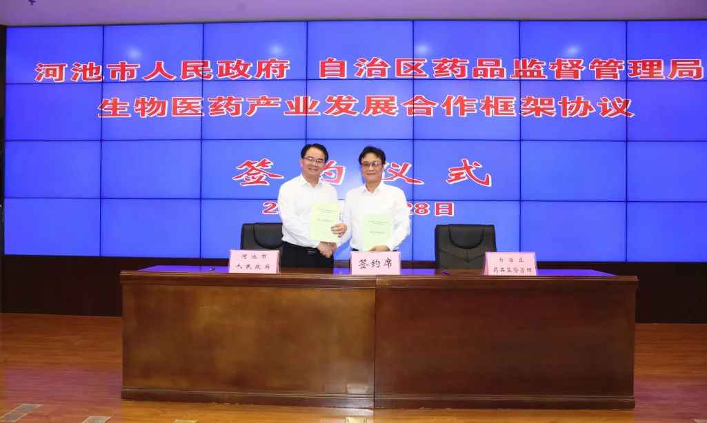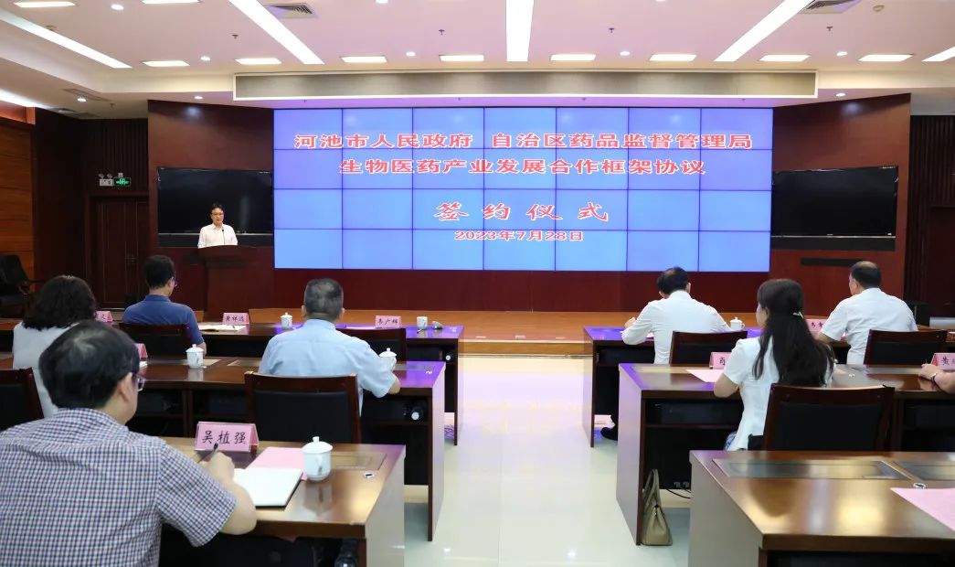 澳门赌场官网 相关处室、直属单位、河池检查分局负责人,河池市澳门赌场官网 、工业和信息化局、卫生健康委、工业园区管委会等部门相关负责人,以及河池市部分医药企业负责人参加签约仪式。